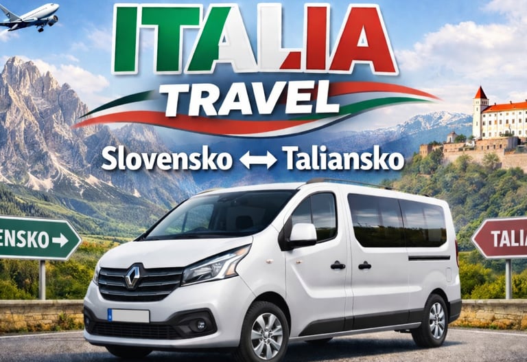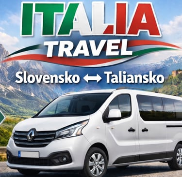 ITALIA TRAVEL PRINÁŠA POHODLNÉ A SPOĽAHLIVÉ SPOJENIE MEDZI SLOVENSKOM A TALIANSKOM. ŠPECIALIZUJEME SA NA PRAVIDELNÚ PREPRAVU OSÔB S DÔRAZOM NA KOMFORT, BEZPEČNOSŤ A PRESNOSŤ. CESTUJTE BEZ STRESU, BEZ PRESTUPOV A S INDIVIDUÁLNYM PRÍSTUPOM. NAŠIM CIEĽOM JE, ABY BOLA KAŽDÁ CESTA PRÍJEMNÝM ZÁŽITKOM, NIE POVINNOSŤOU. S NAMI STE VŽDY O KROK BLIŽŠIE K TALIANSKU.