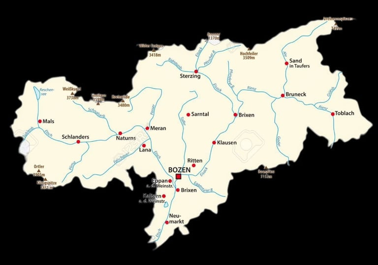 TRASA A – VIEDEŇ, SALZBURG, INSBRUCK, BRENNERO, STERZING, BRIXEN, KLAUSEN, BOLZANO, NEUMARKT, MEZZOCORONA, KALTERN, LANA, MERANO, LATSCH, SCHLANDERS, MARTELL, PRATO, MALS